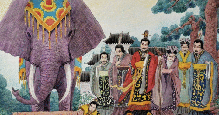 古时候有个叫曹操的人。别人送他一头大象,他很高兴,带着儿子和官员们一同去看。