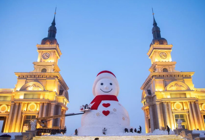 Next to the big snowman, there are four little companions, welcoming tourists to visit Harbin together.In 2025, Harbin will host the Asian Winter Games, and Harbin will become an important city for winter tourism and winter sports.