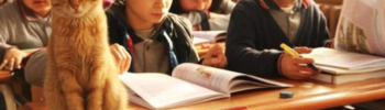 孩子们的猫同学名字叫Tombi, 它是一只橘黄色的猫,它又可爱又聪明。The kids’ cat classmate is named Tombi. It is an orange cat, and it’s both cute and smart.